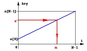 Оскільки шуканий елемент швидше за все знаходиться „десь в середині”, перевіримо саме середній елемент: a[N / 2] == key